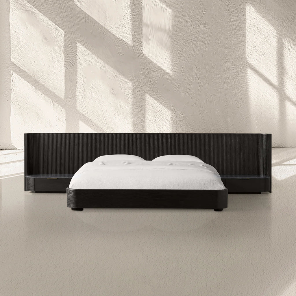 Our Finnley Bedroom Collection showcases a stunning mixed-material design, inviting elevated style into your bedroom oasis. Hand-finished pine from Finland or white oak wood is luxuriously accented by reeded oak detailing complemented by stone tops on the attached nightstands. The result is an eclectic-yet-chic bedroom suite that easily fits into the aesthetic of your home.