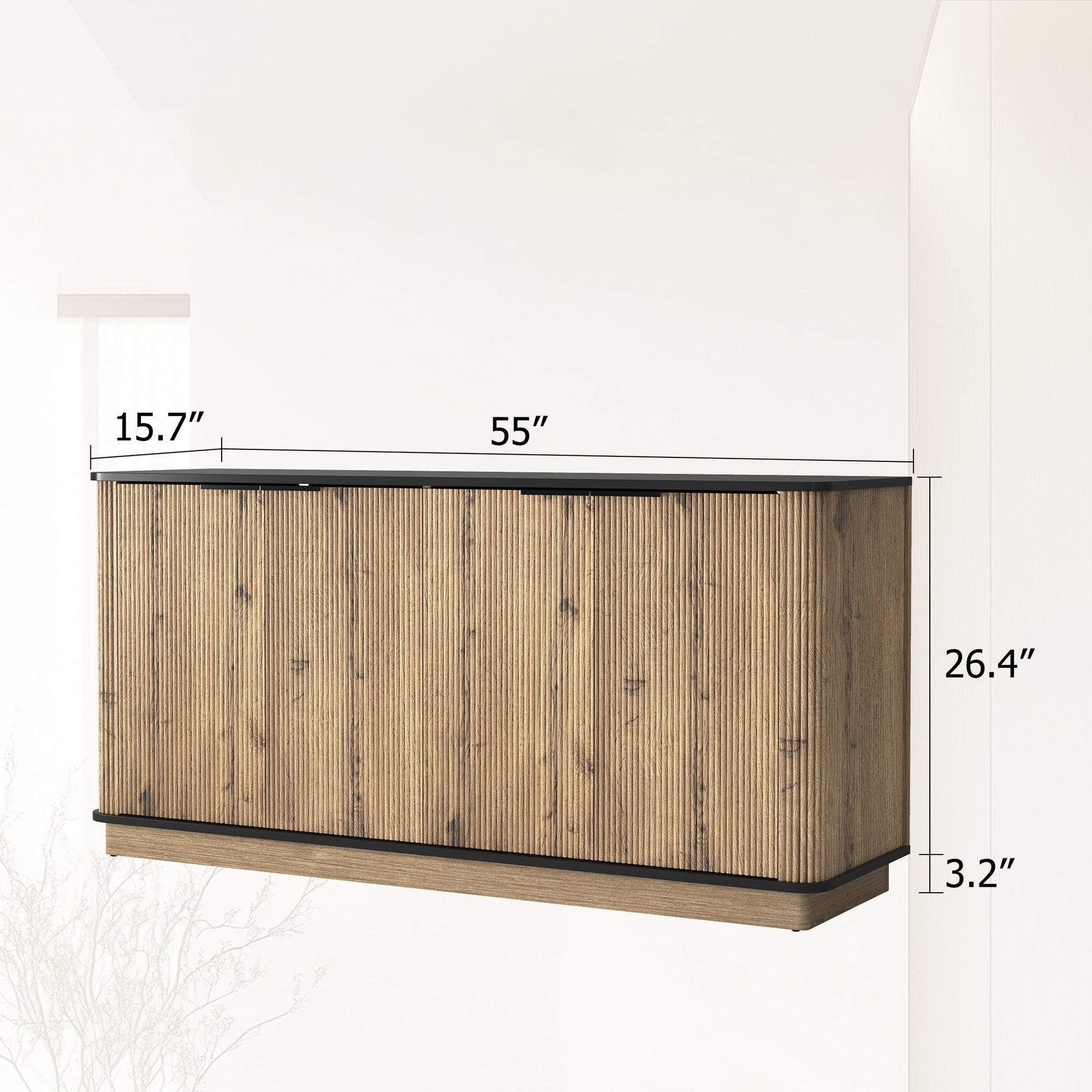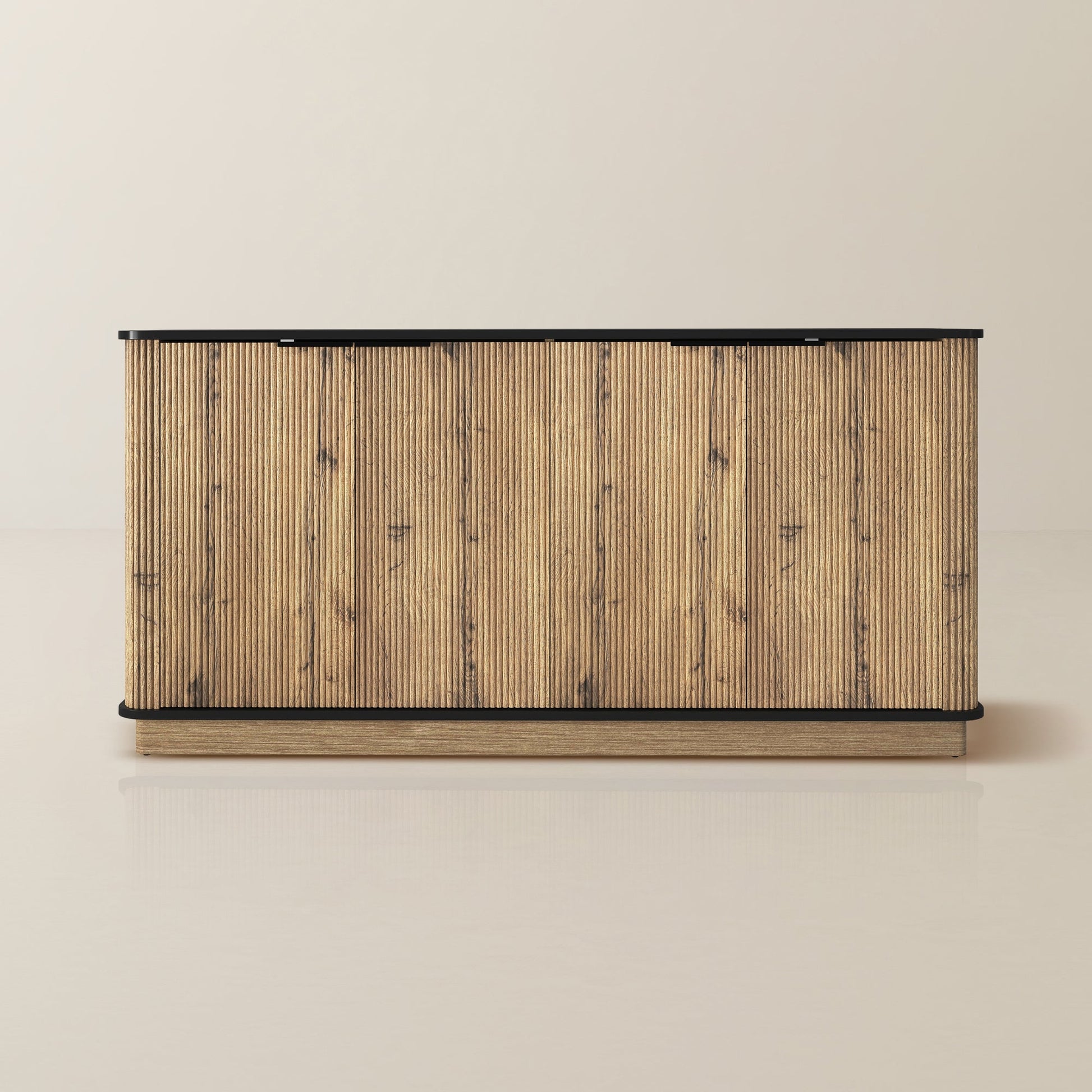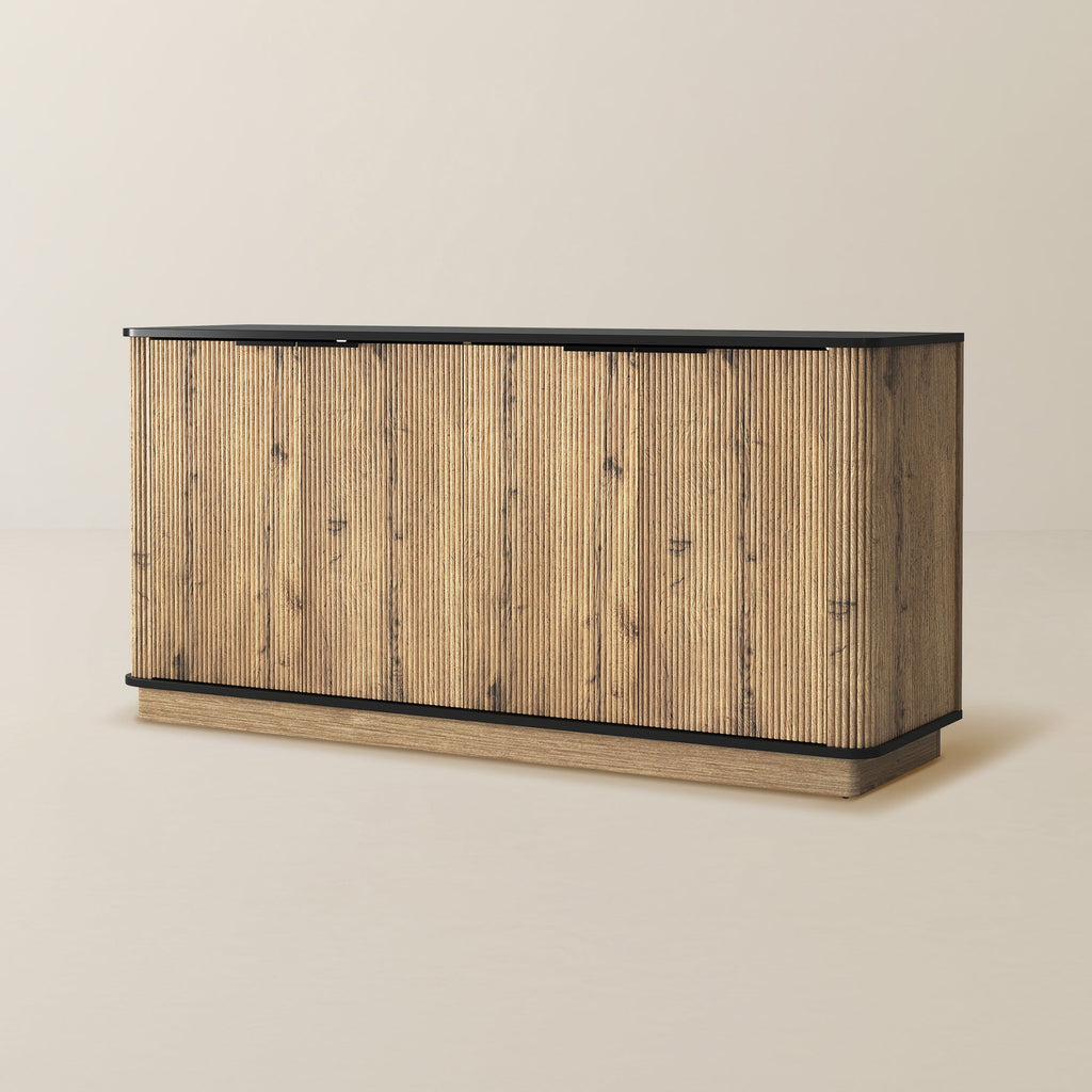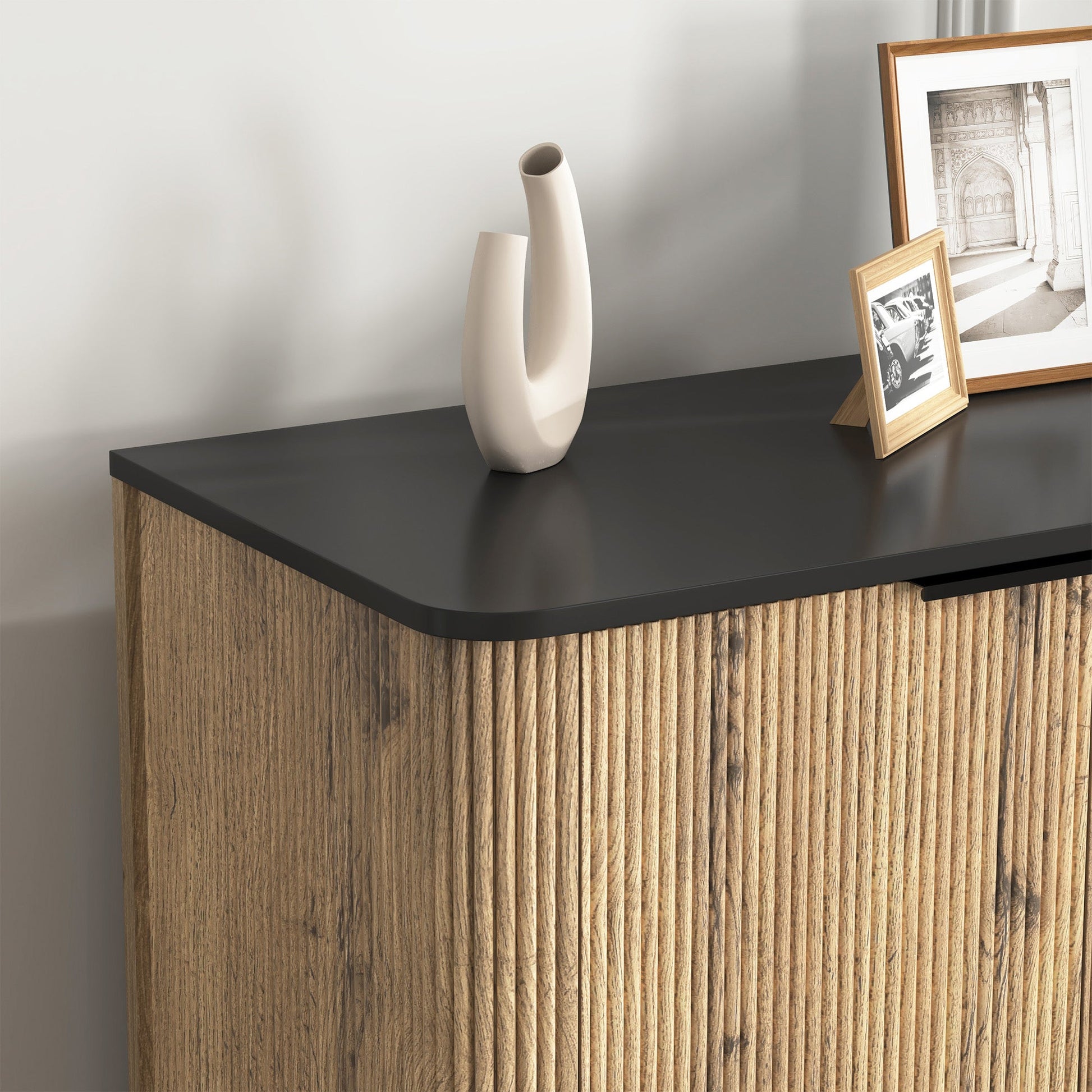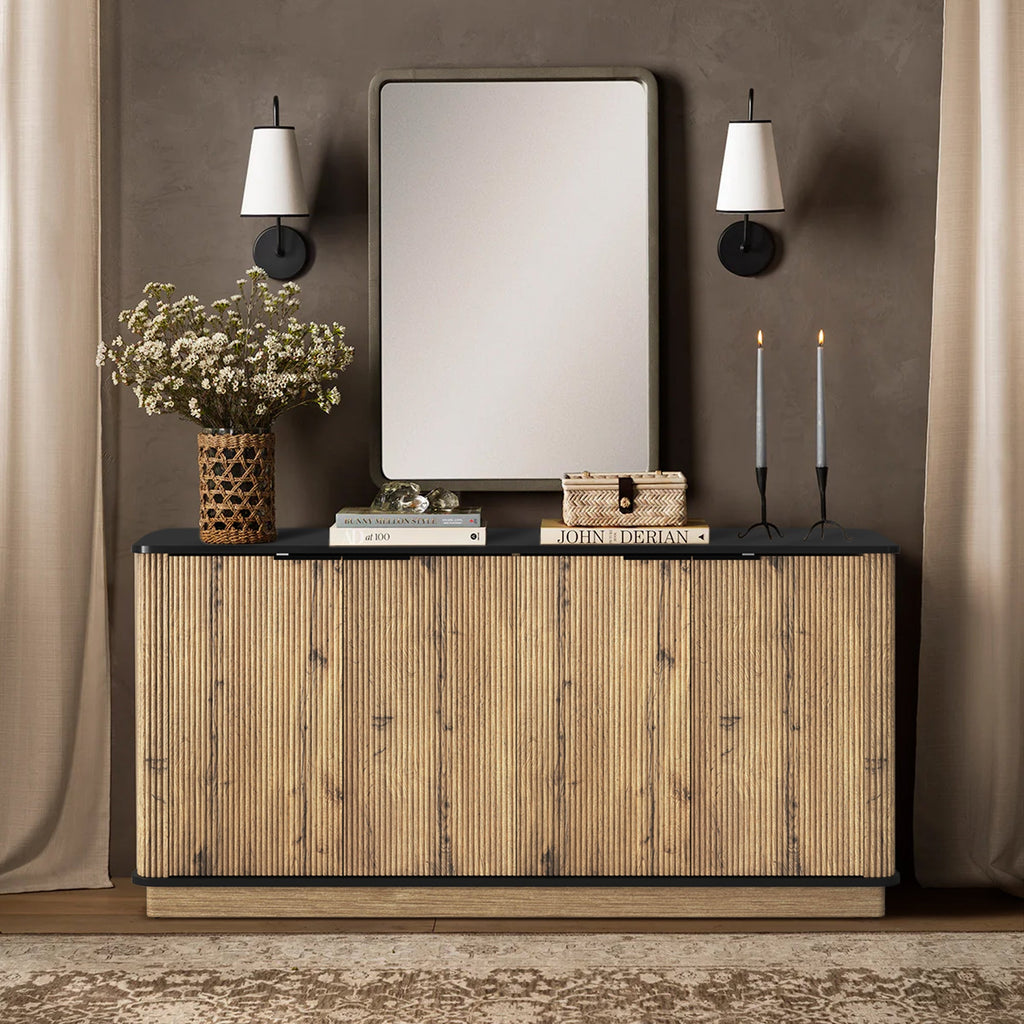 This MDF sideboard is designed with delicate rounded corners to enhance the structural stability of the cabinet. The rounded corner design also effectively prevents injuries caused by accidental impacts, thus improving home safety. The cabinet is equipped with exquisitely designed handles, which not only provide a convenient experience for switching, but its beautiful shape also adds a sense of fashion to the overall appearance of the cabinet.