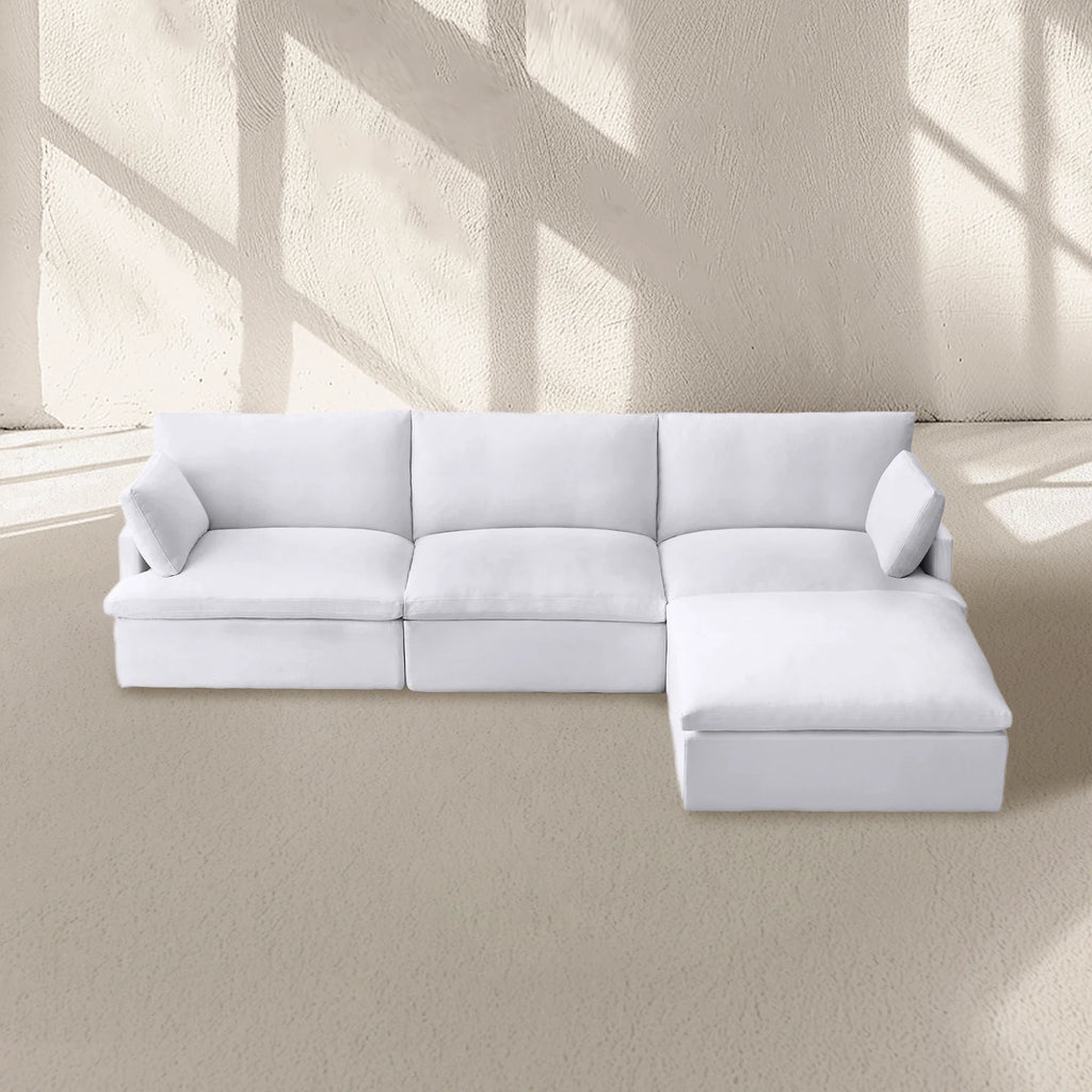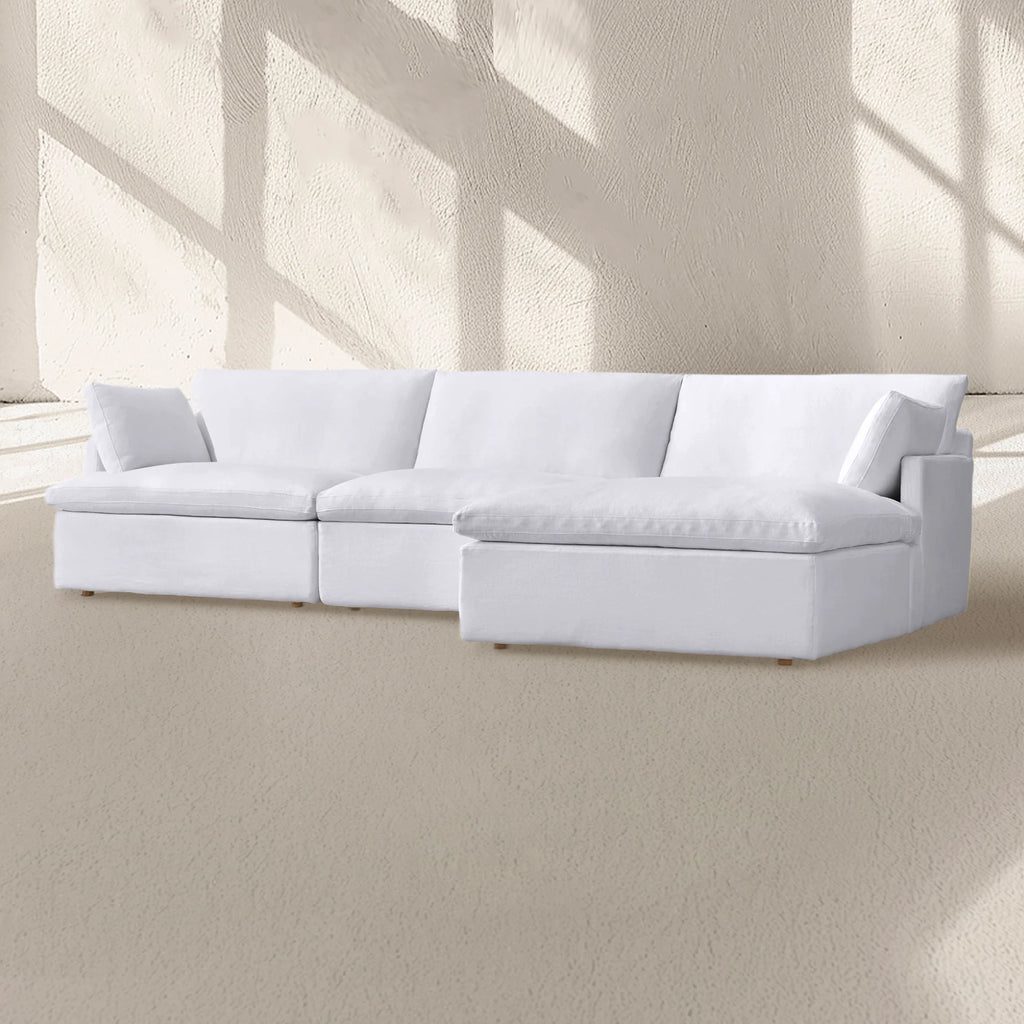 The world's most comfortable sofa, The Cloud®, is designed by Timothy Oulton and crafted for ultimate relaxation. Featuring sink-in comfort with soft feather and down construction wrapped around a premium foam core for support, it offers the perfect balance of plushness and structure. Highly customizable, The Cloud® includes five slipcovered cubes available in two depths, allowing for endless configuration possibilities to fit any space. A modern masterpiece, it combines versatility, impeccable proportions, and unparalleled comfort to redefine lounging.