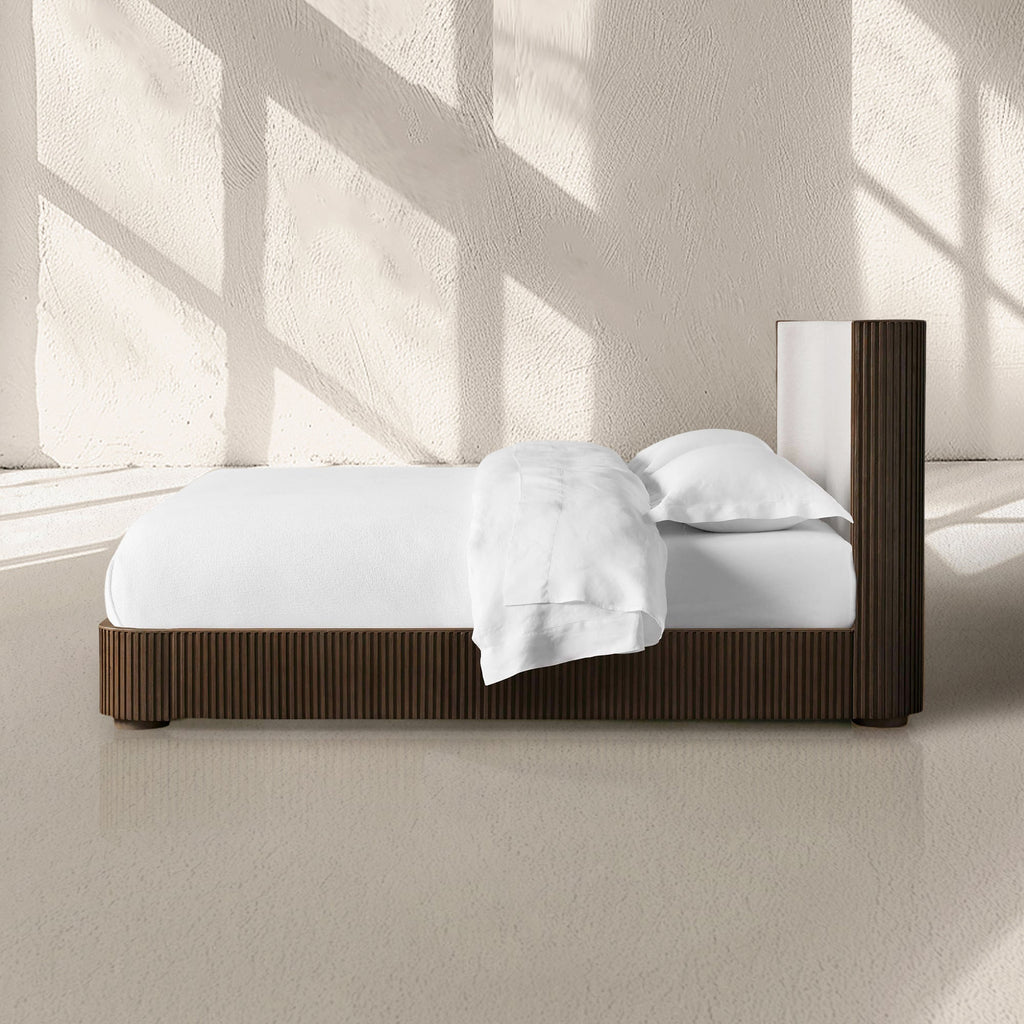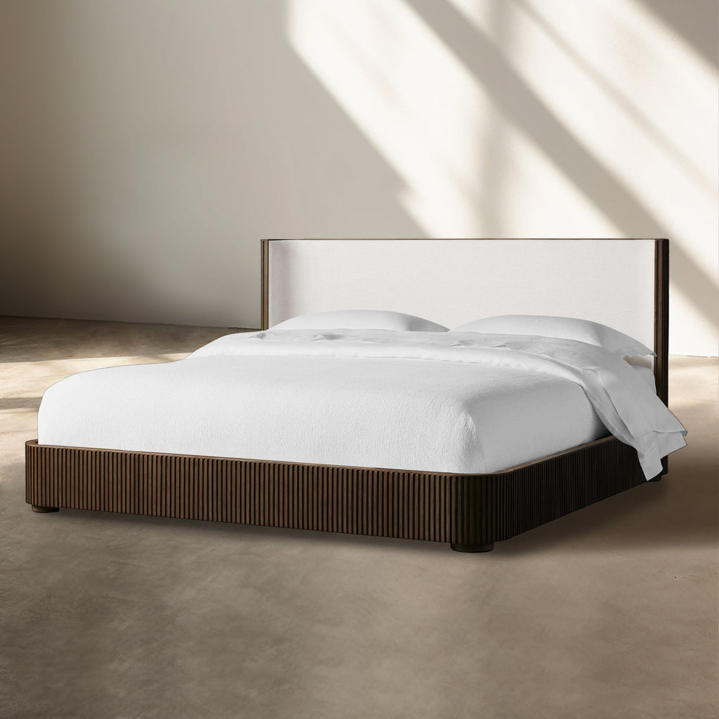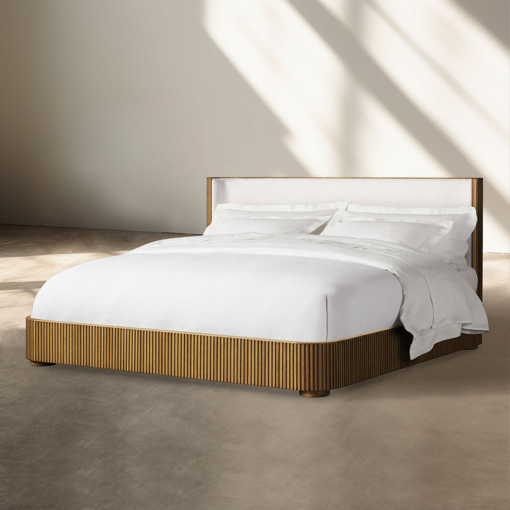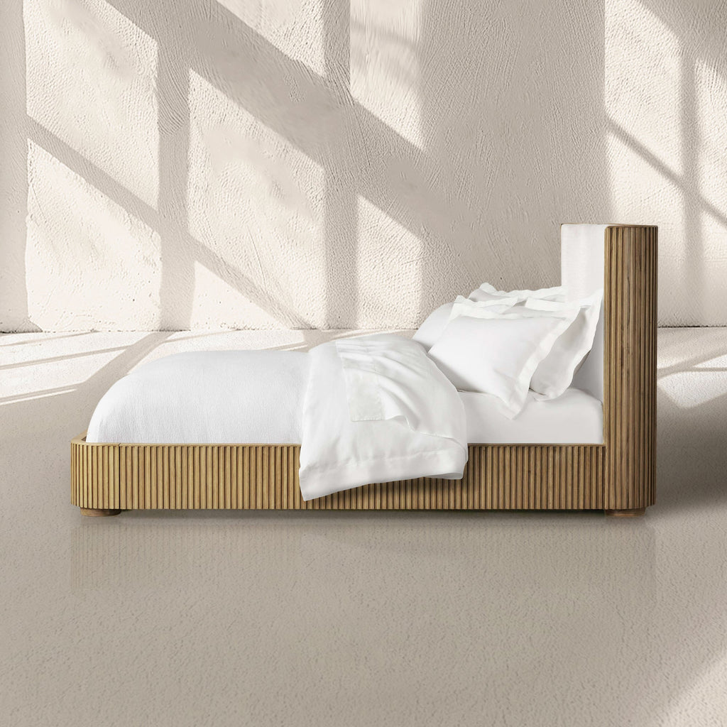 Our Finnley Bedroom Collection showcases a stunning mixed-material design, inviting elevated style into your bedroom oasis. Hand-finished pine from Finland or white oak wood is luxuriously accented by reeded oak detailing and complementing upholstery. The result is an eclectic-yet-chic bedroom suite that easily fits into the aesthetic of your home.