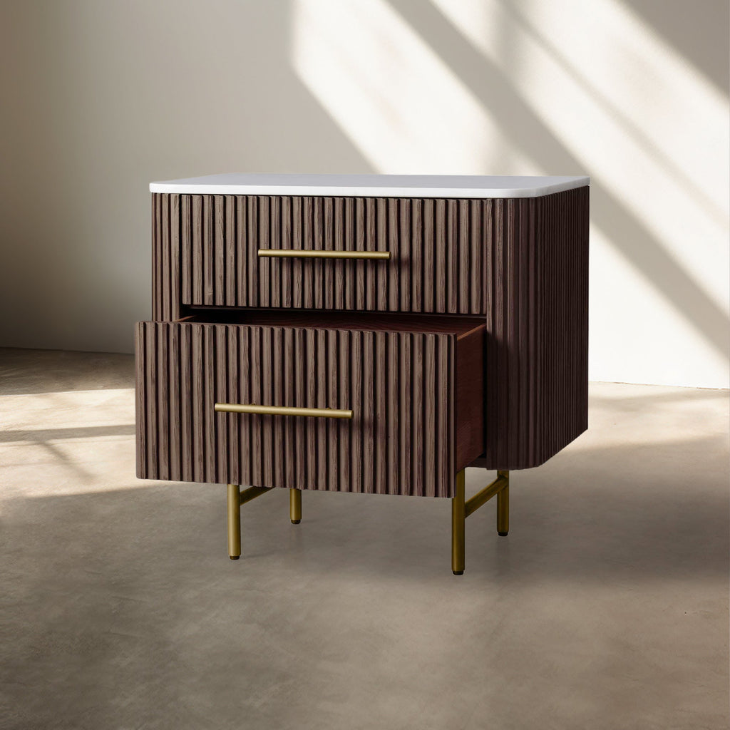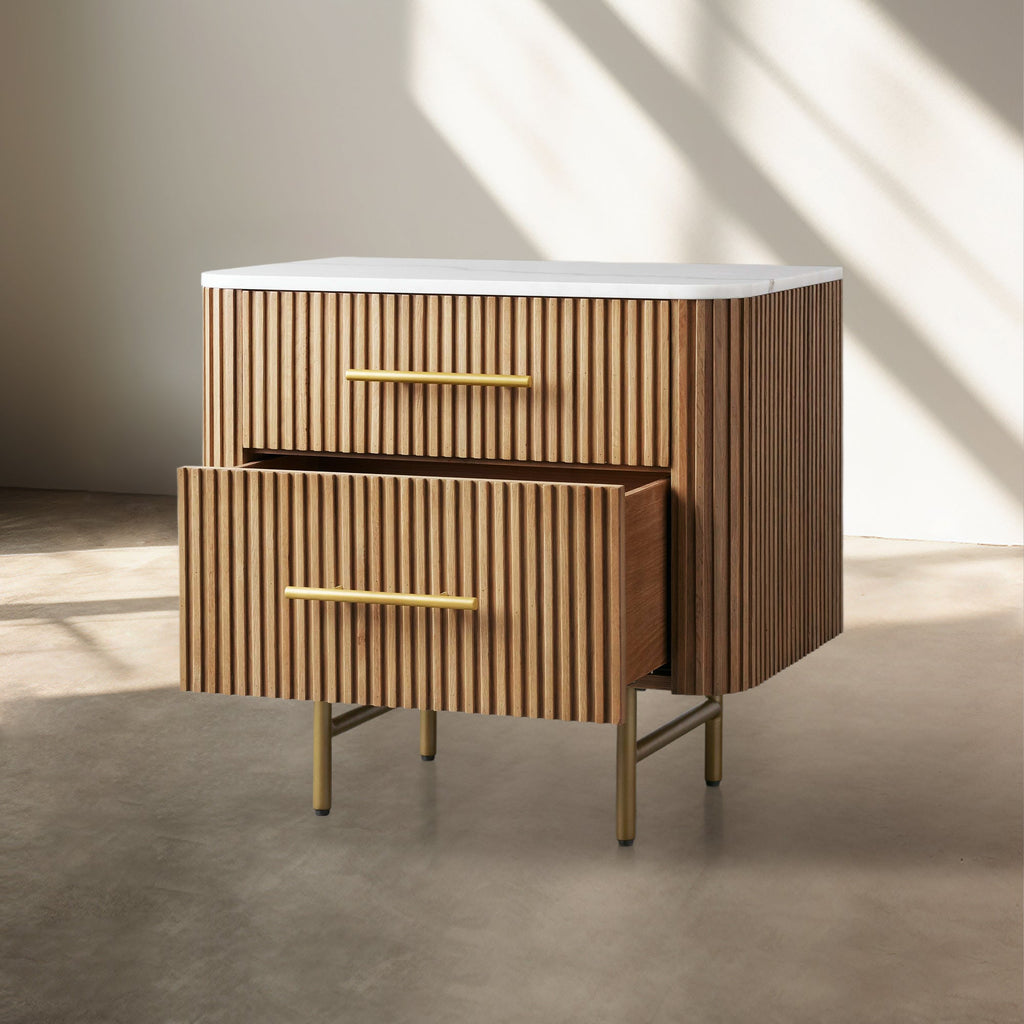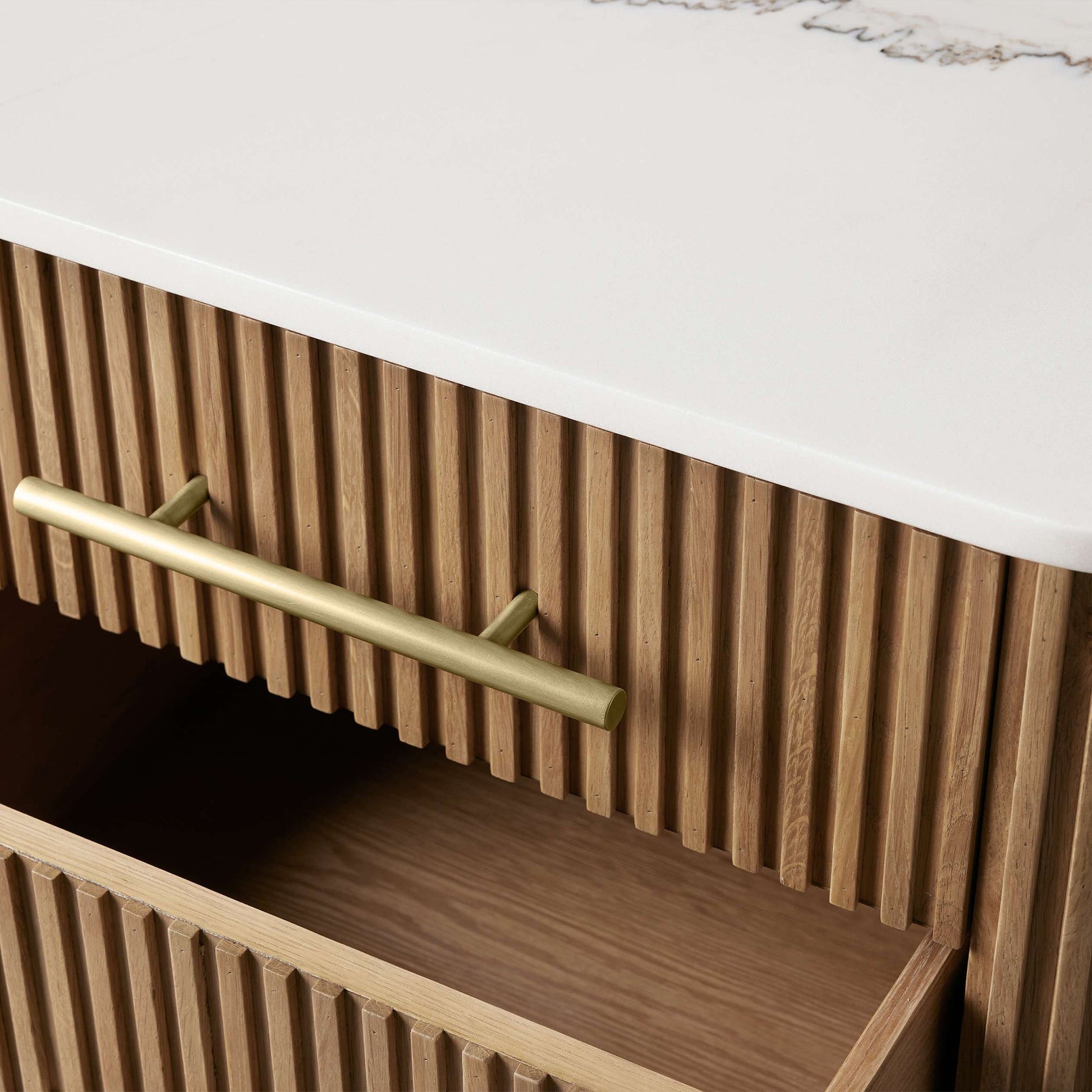 Our Finnley Bedroom Collection showcases a stunning mixed-material design, inviting elevated style into your bedroom oasis. Hand-finished pine from Finland or white oak wood is luxuriously accented by reeded oak detailing complemented by stone tops. The result is an eclectic-yet-chic bedroom suite that easily fits into the aesthetic of your home.