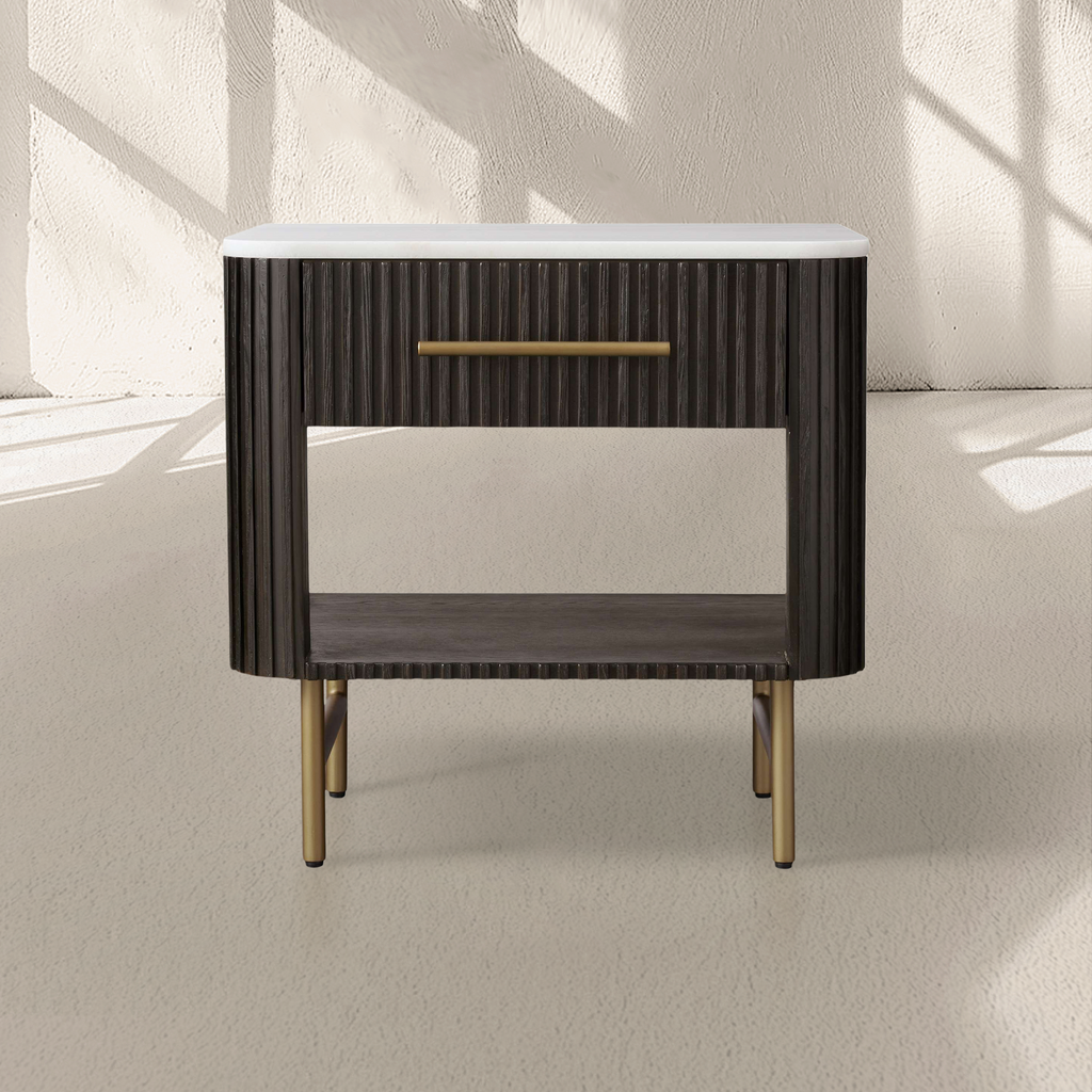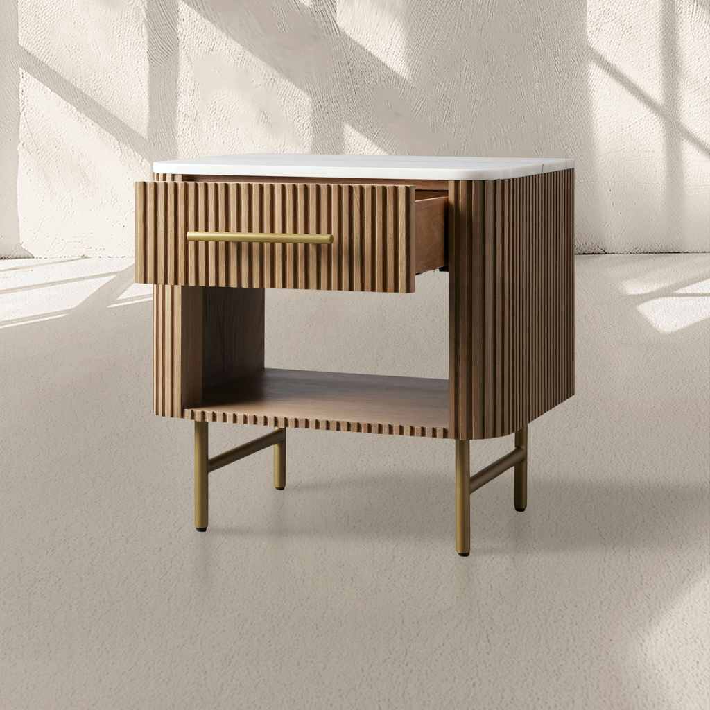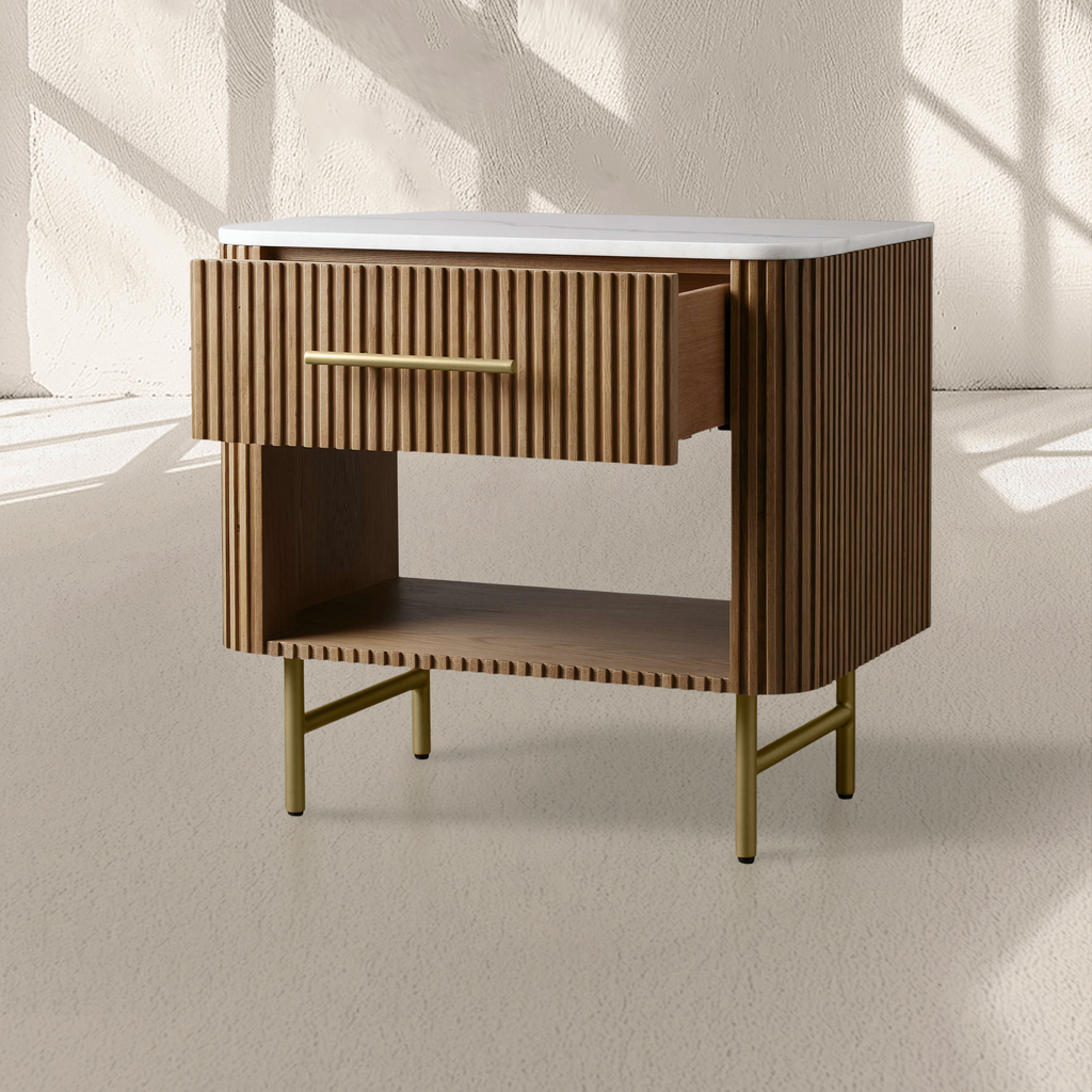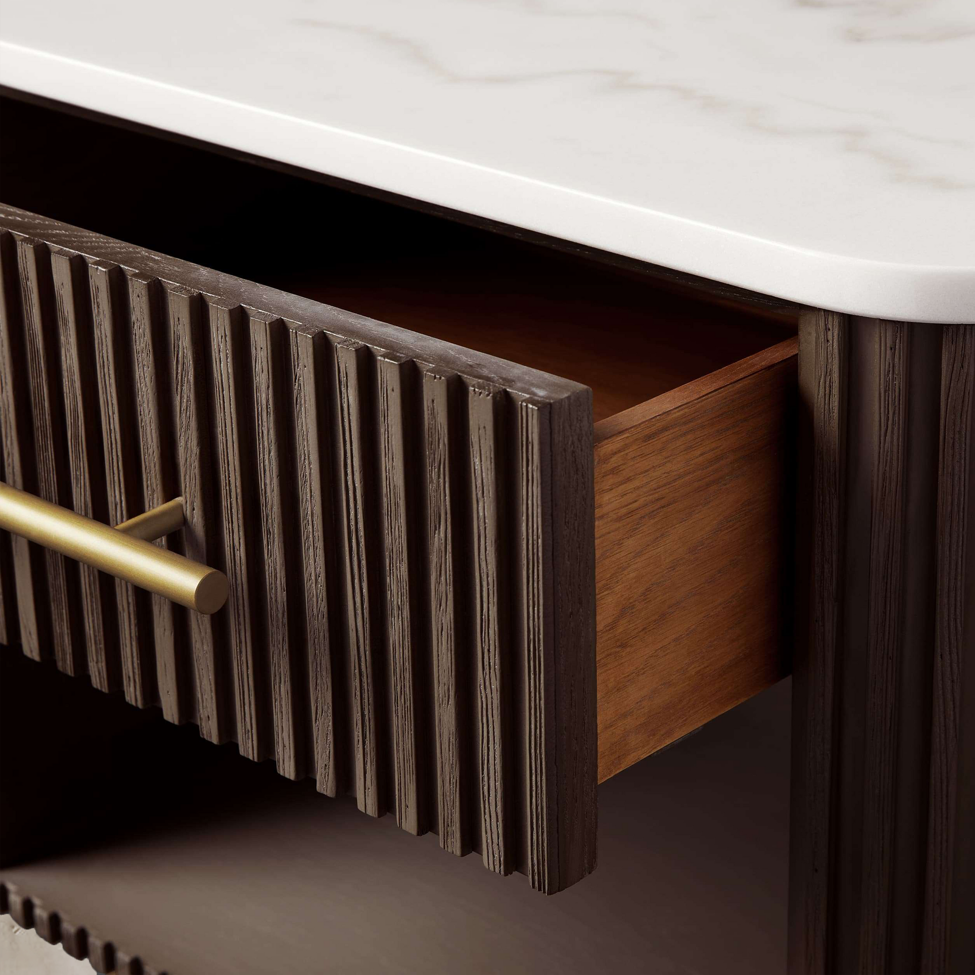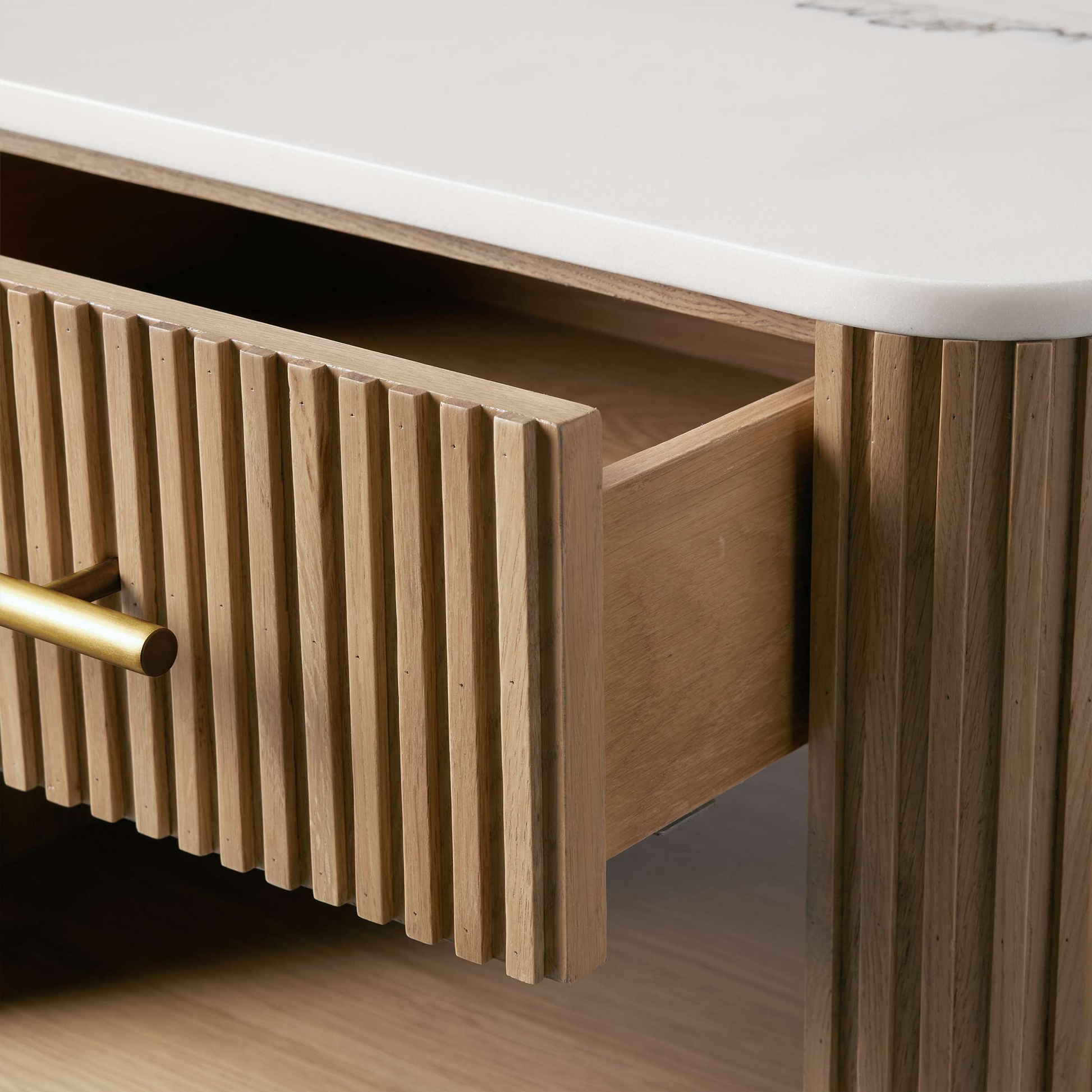 Our Finnley Bedroom Collection showcases a stunning mixed-material design, inviting elevated style into your bedroom oasis. Hand-finished pine from Finland or white oak wood is luxuriously accented by reeded oak detailing complemented by stone tops. The result is an eclectic-yet-chic bedroom suite that easily fits into the aesthetic of your home.