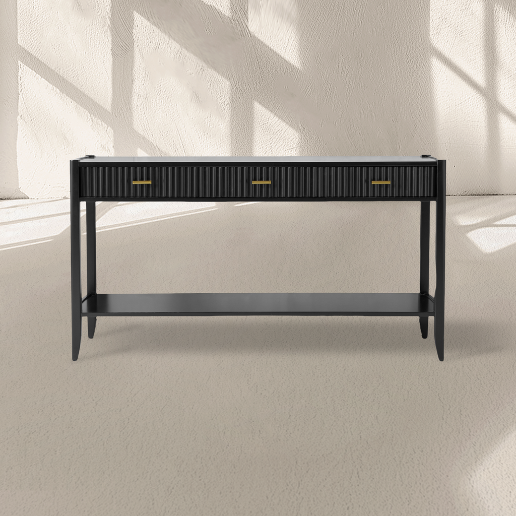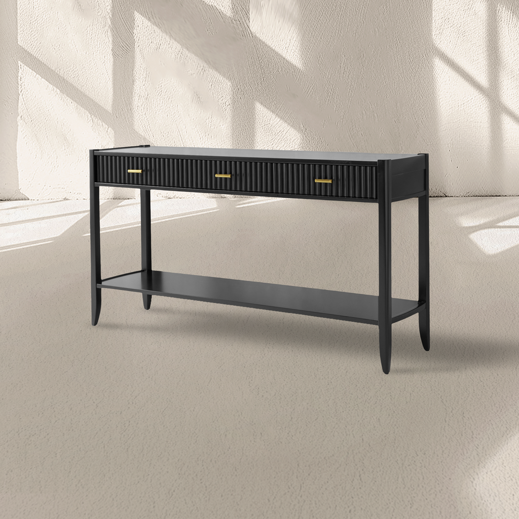 The Lewis 3-Drawer Console (60'') is a stunning blend of modern design and functional elegance. This versatile console features three spacious drawers, offering ample storage while maintaining a sleek, minimalist aesthetic. Crafted from high-quality materials, its 60-inch width provides a generous surface for displaying decor, electronics, or other essentials. Perfect for living rooms, entryways, or bedrooms, the Lewis Console seamlessly complements contemporary and transitional interiors. Elevate your space with this harmonious fusion of practicality and sophisticated style, making it a timeless addition to your home.