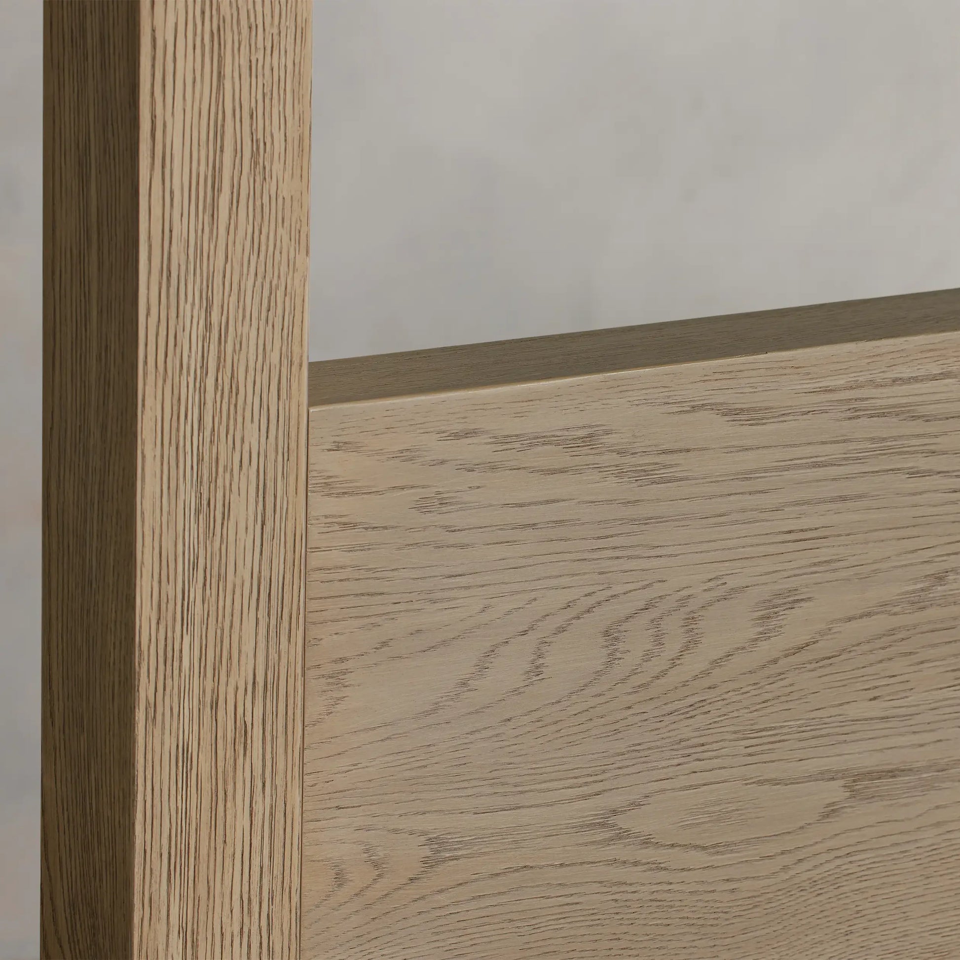 With bold, minimalist silhouettes, our Ludwig Collection redefines rustic design by celebrating the beauty of simple construction and highlighting the stunning grain of natural white oak. Each piece is meticulously crafted by skilled artisans and hand-finished through a detailed process—wire brushed, sanded, and treated with a six-step application of stain, glaze, sealer, and lacquer to achieve an elegant, "organically aged" patina. Designed with spacious storage for electronics, media, and décor, the collection is accentuated by beautiful brass hardware finished in a soft champagne tone, adding a touch of refined sophistication to its timeless appeal.