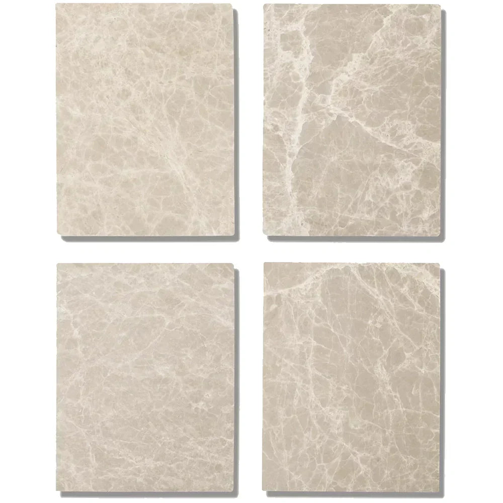 • Marble is honed and sealed for a smooth finish that enhances the stone's vein patterning and natural color contrasts