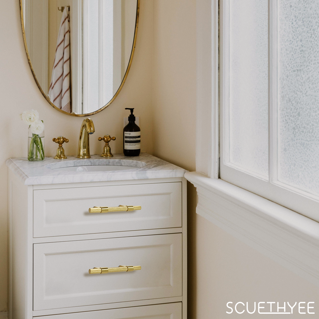 Our Scarborough Cross Knurled Solid Brass Handles are the perfect feature for your gorgeous cabinetry. Knurled from tip to tip, these handles are the ultimate in luxury, and available in two colour ways - brass and black.