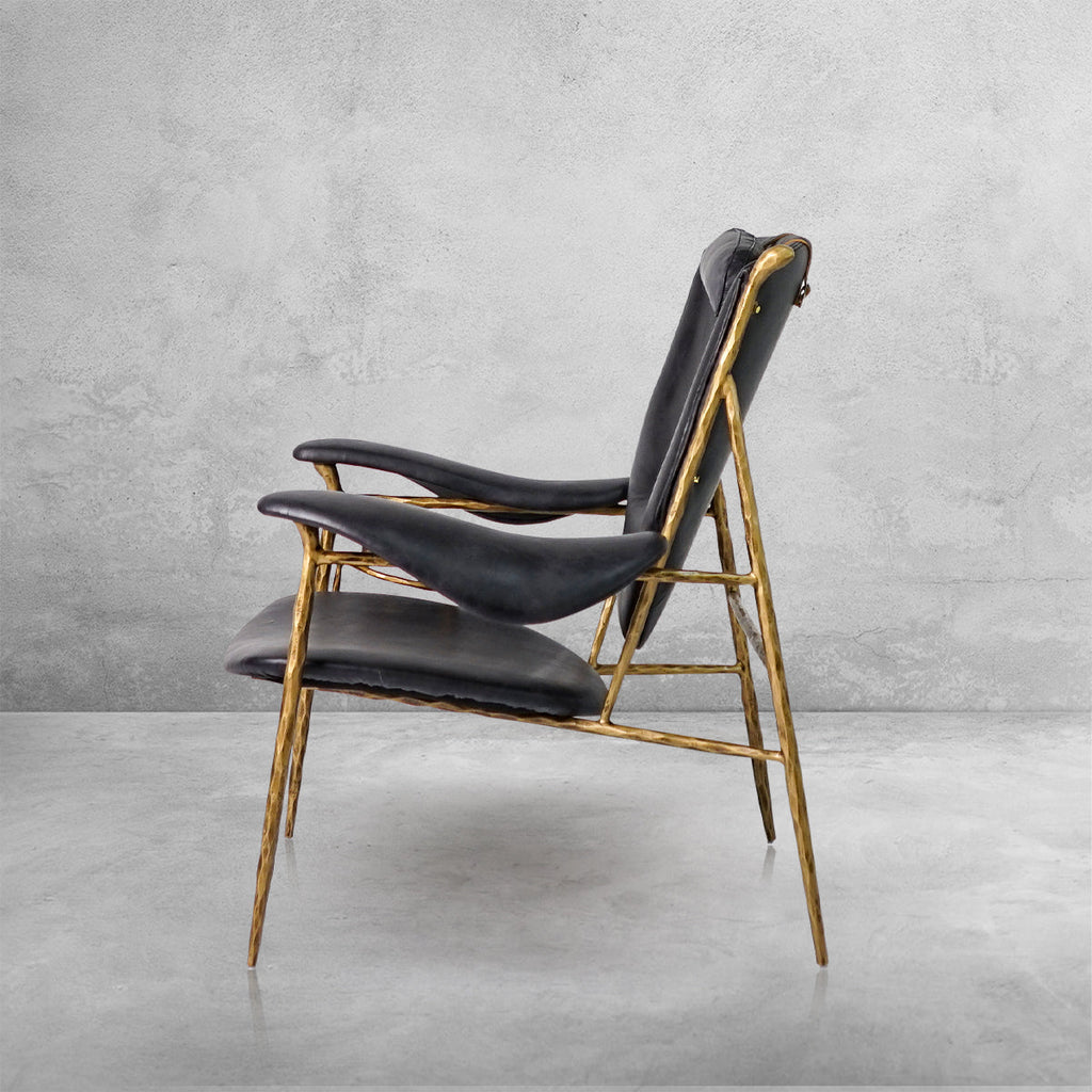 With its unique design and refined quality, this chair is the perfect blend of modernity and practicality. The main body of the chair is made of high-quality black leather, which is delicate to the touch and easy to clean, giving it a touch and elegance. The gold metal frame is sturdy and durable, providing not only stable support for the chair, but also adds a touch of luxury.