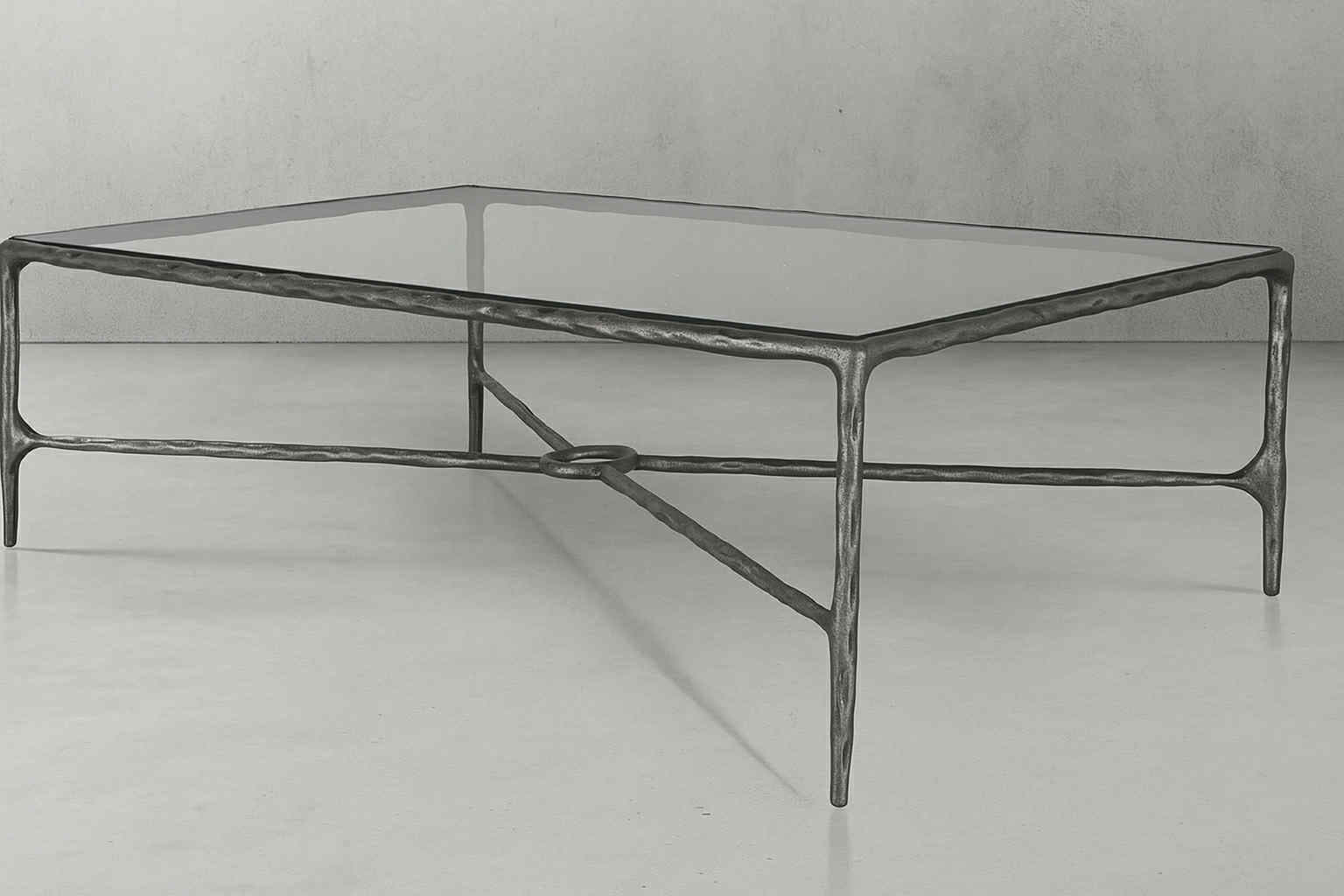 Inspired by the sculptural artistry of Salvador Dalí and Diego Giacometti, Julie Lawrence's collection blends rustic elegance with modern refinement. Each piece features a hand-forged base crafted from solid brass or solid stainless steel, topped with clear glass. Using a centuries-old technique, artisans meticulously hand-hammer the metal bars, creating a raw, organic texture that contrasts beautifully with the base’s slender, tapered silhouette.