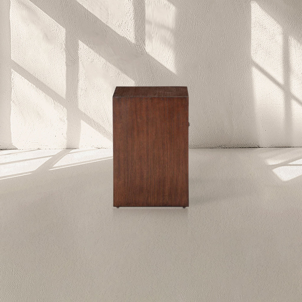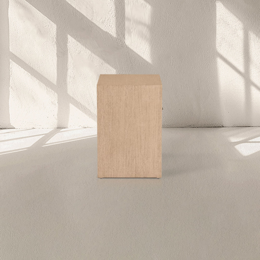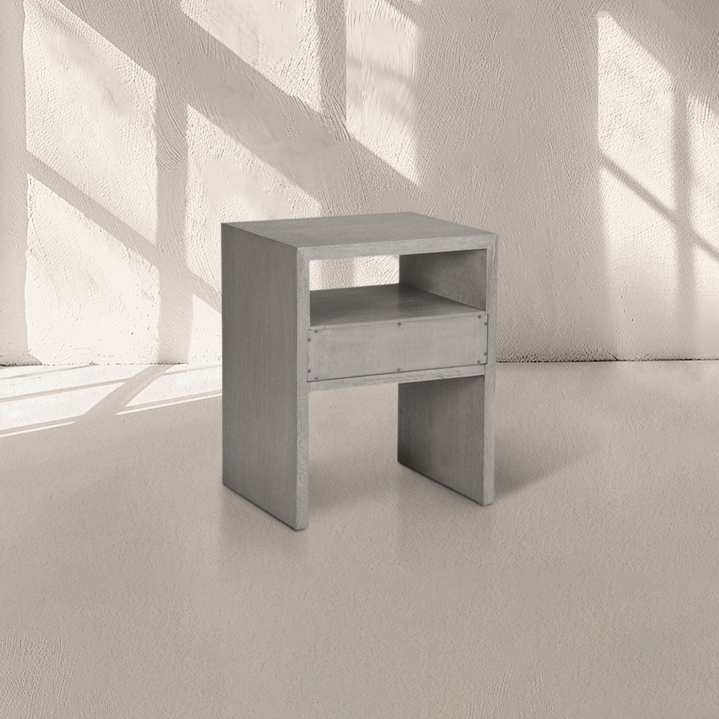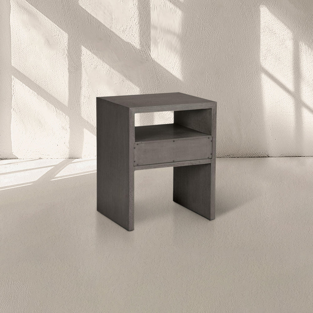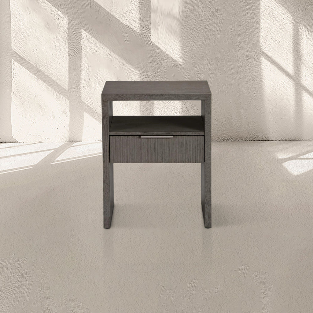 The Verlpo Small Night Table is a compact yet highly functional piece designed to elevate your bedroom with its thoughtful details. Featuring an open shelf for easy access to bedtime essentials like books or a phone, it also includes a discreet storage drawer with a beautifully reeded front, adding texture and visual interest. Crafted from oak with a prominent, hand wire-brushed grain, this night table showcases artisanal craftsmanship. Its petite size makes it ideal for any space, while its practical design ensures it meets your storage needs with effortless style. A perfect blend of form and function, the Verlpo Small Night Table is a charming addition to your bedroom.