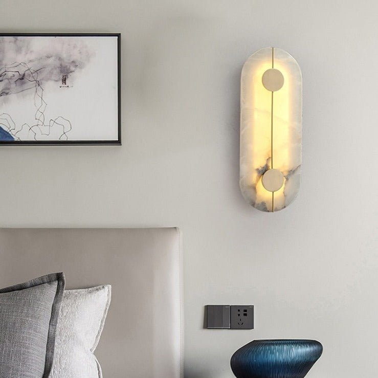 The Yohana Wall Lamp is an inspired blend of sophistication, luxe, and effortless poise. Incorporating a captivating marbled shade and gold-finished metal accents, this light brings an air of refinement, upgrading any room with a tasteful touch and dispersing a tranquil, warm ambient light. Ideal in the living room, foyer, or bedroom, this luminaire serves as an eye-catching focal point, fitting in gracefully with all types of interior decor.